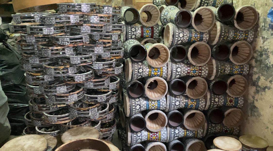 وفي حديث مع أحمد فسكان، عامل تقطيع الصدف، قال: "الممارسة هي الأهم في هذه المهنة. فقد مضى أكثر من خمسين عامًا وأنا أعمل في هذا المجال، وأعرف تمامًا كيف أزين الطبلة بدقة." وأضاف أن تقطيع الصدف يأخذ وقتًا قد يصل إلى عشرين دقيقة للطبلة الواحدة.
