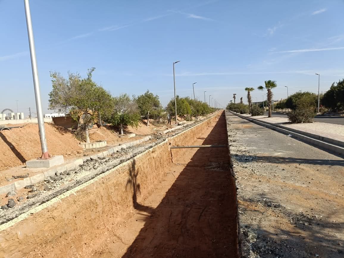 جهاز الشروق ينقل خط مرافق رئيسى مار بالمنطقه الترفيهيه بالمدينه