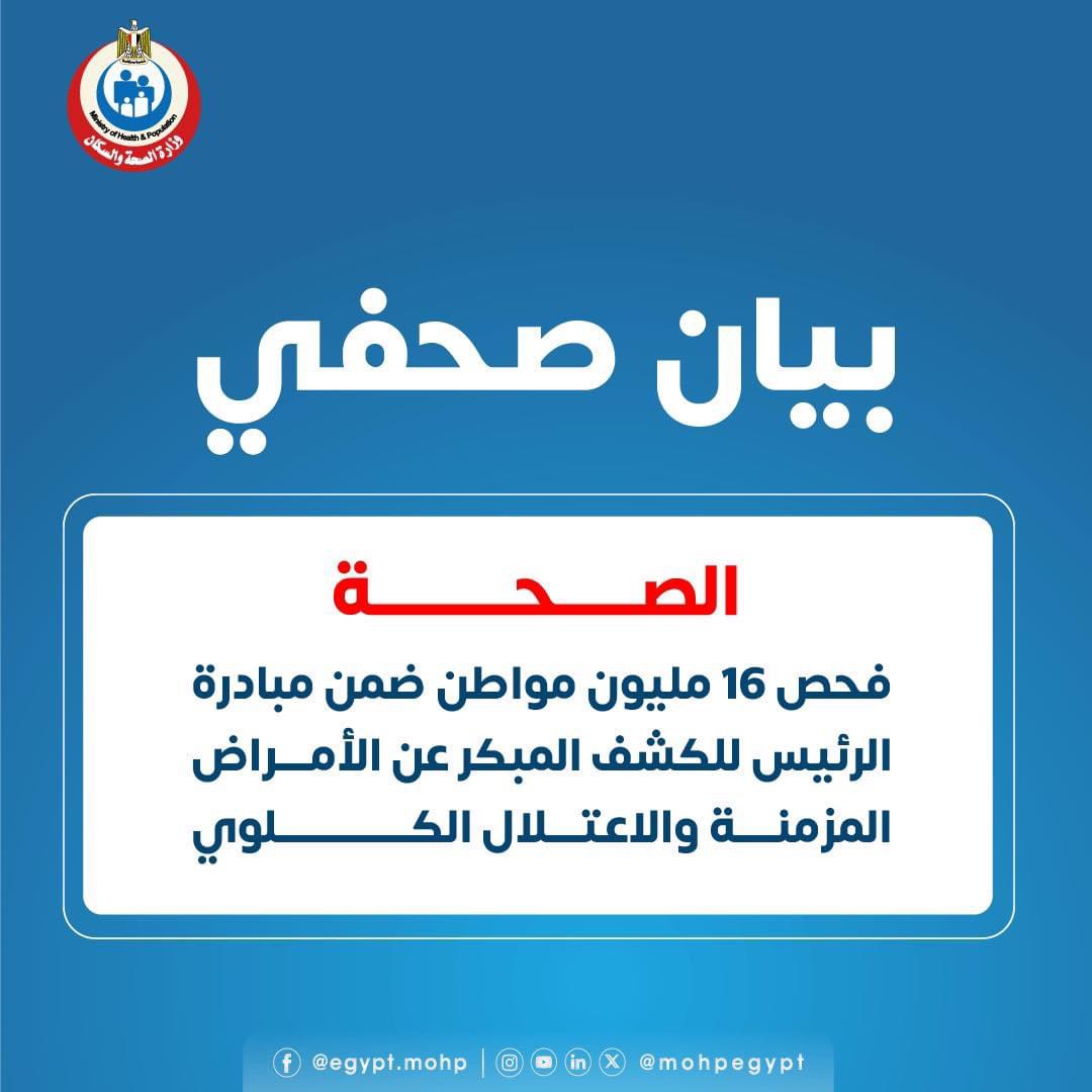 فحص 16 مليون مواطن ضمن مبادرة الرئيس للكشف المبكر عن الأمراض المزمنة والاعتلال الكلوي