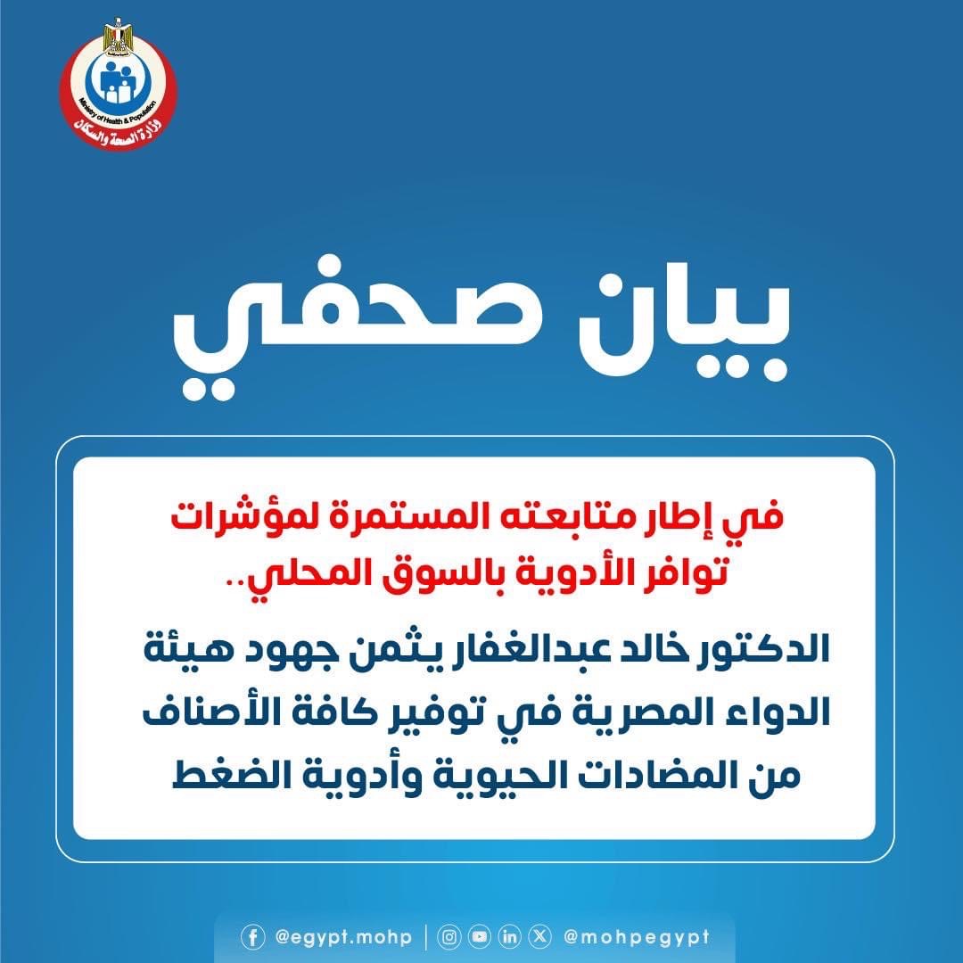 الدكتور خالد عبدالغفار يثمن جهود في توفير كافة الأصناف من المضادات الحيوية وأدوية الضغط