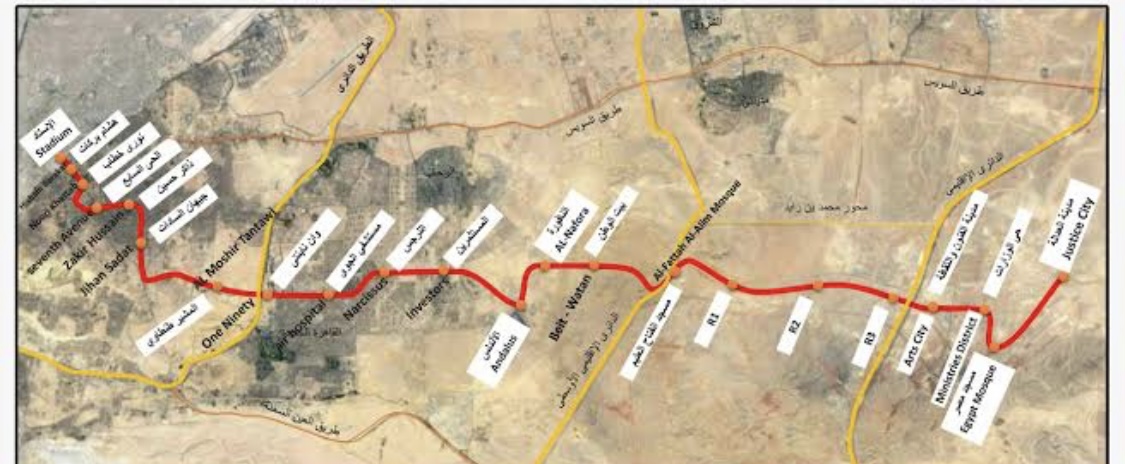 وتم بدء تنفيذ المرحلة الأولى التي تمثل 22 محطة من محطة الأستاد بمدينة نصر حتى محطة العدالة بالعاصمة الإدارية الجديدة، وبدأوا في تشغيل المونوريل من محطة المشير حتى العاصمة الإدارية الجديدة بشكل تجريبي، ويعمل ذلك المونوريل دون الحاجة إلي سائق ويتم إدارته عن بعد من خلال وحدة التحكم بالعاصمة الإدارية الجديدة.