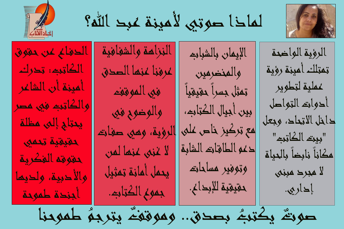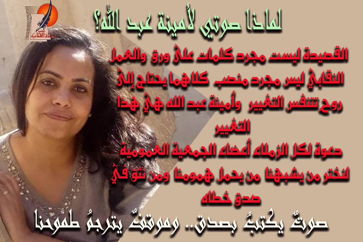 أمينة عبد الله تحظى برصيد إبداعي ونقابي يجعل من ترشحها رقماً مهماً في