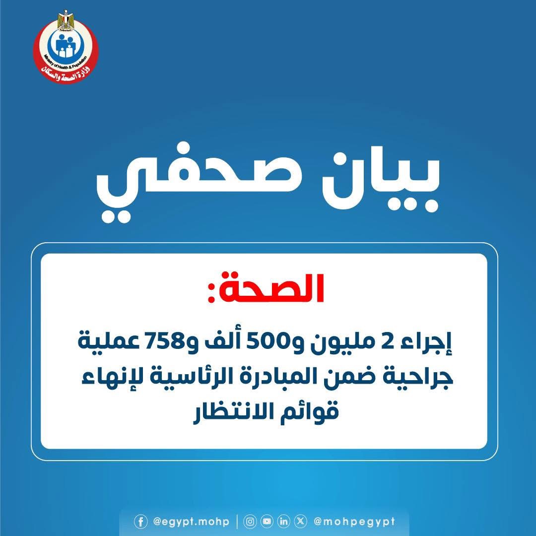 إجراء 2 مليون و500 ألف و758 عملية جراحية