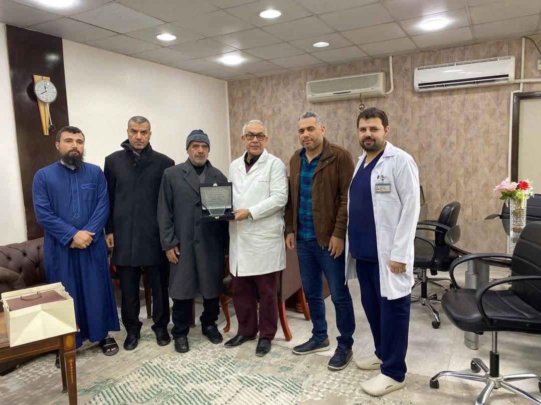 مصاب فلسطيني يقدم هدية تذكارية لأطباء مستشفى الهرم