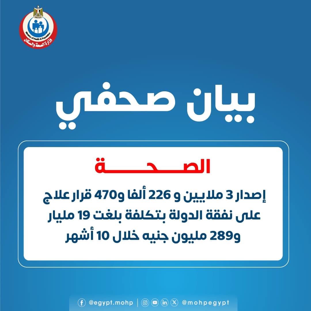 إصدار 3 ملايين و 226 ألفا و470 قرار علاج على نفقة الدولة