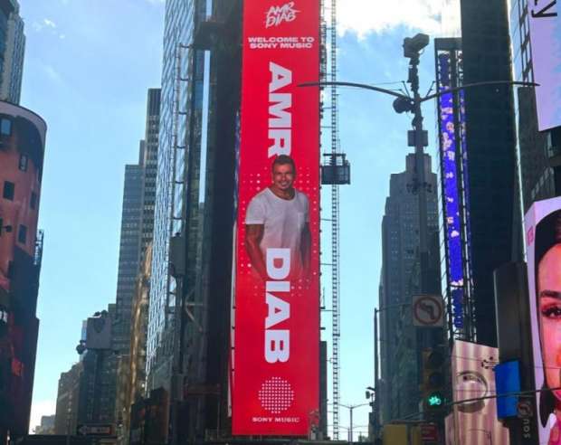 صور عمرو دياب تزين ميدان تايمز سكوير في أمريكا