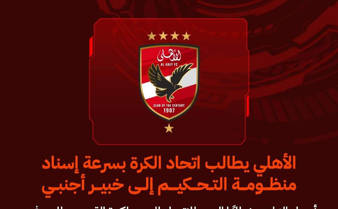 الأهلي يطالب اتحاد الكرة بسرعة إسناد منظومة التحكيم إلى خبير أجنبي