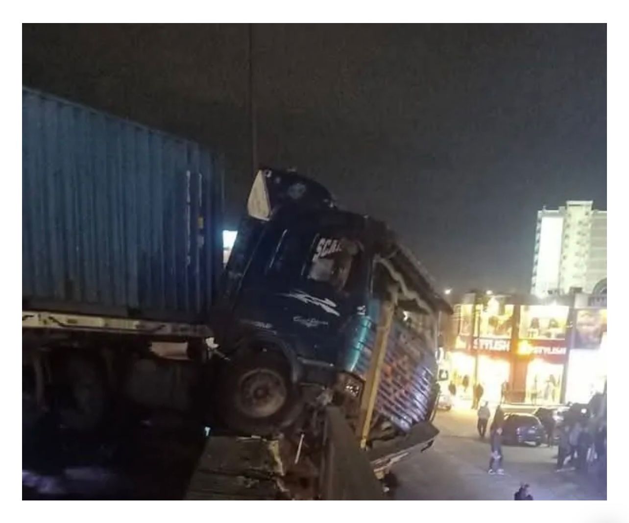 انقلاب سيارة نقل أعلى كوبري قويسنا بالمنوفية